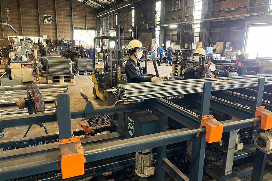 鉄筋切断、鉄筋曲げ加工、鉄筋溶接、メッシュ溶接、メッシュ曲げ加工、梱包、出荷作業、品質管理等